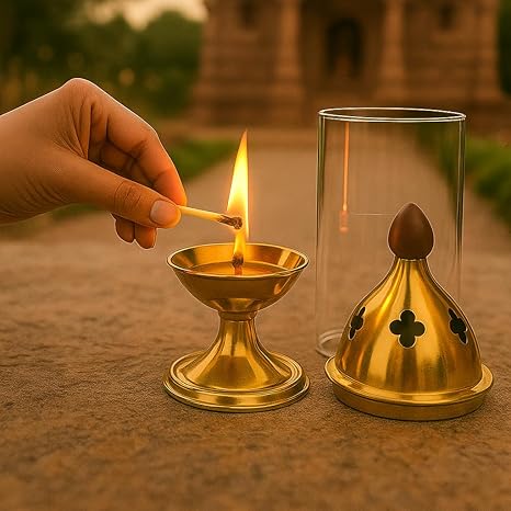 - Long-Lasting Flame Protection: Comes with a glass cover that shields the flame from wind and dust, ensuring continuous light during prayers and ceremonies.